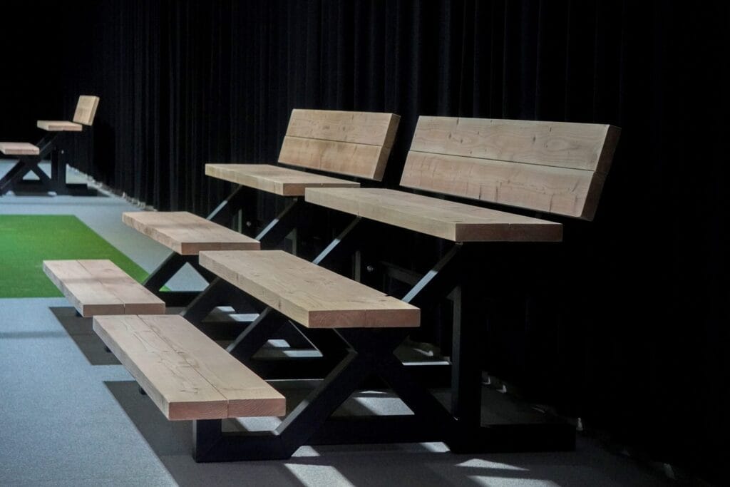 - Spielerbänke – bequem, robust und perfekt für die Pausen zwischen den Matches