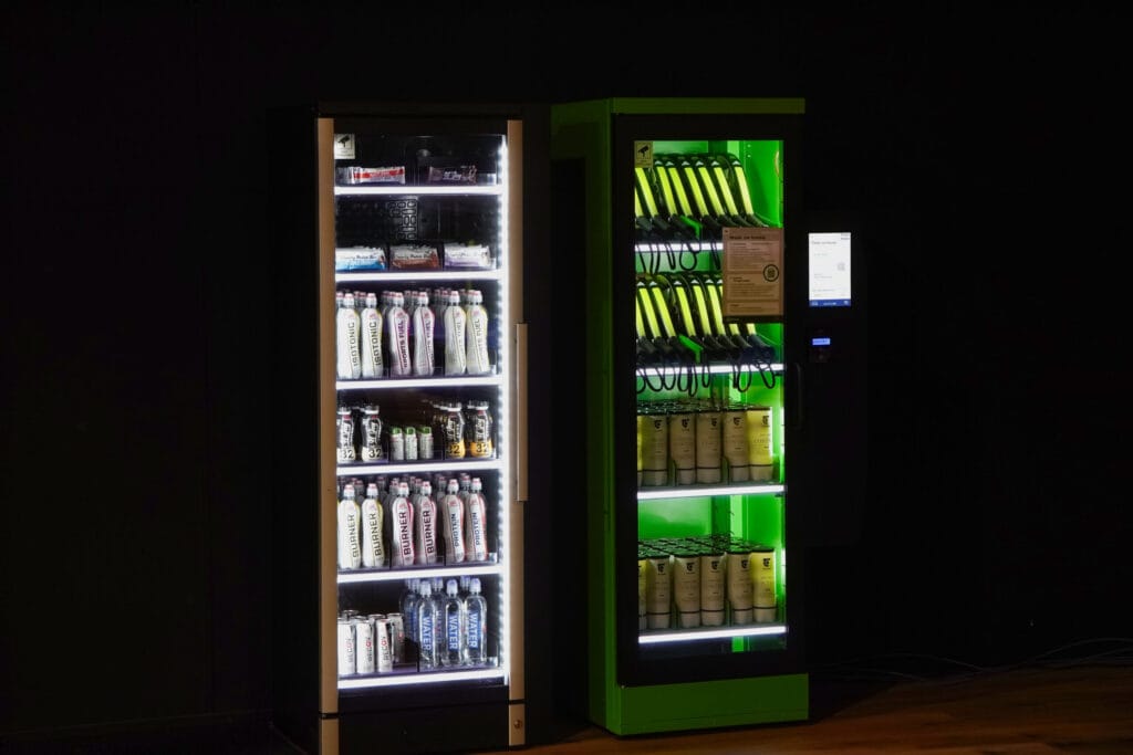 Der Combi-Kiosk ist eine Erweiterung des Padel-Kiosks. In einem zusätzlichen Automaten gehören auch Getränke und Snacks zum Angebot. Mit diesem gekühlten Automaten können Spieler zwischen Softdrinks, Wasser sowie gesunden und etwas weniger gesunden Snacks wählen.